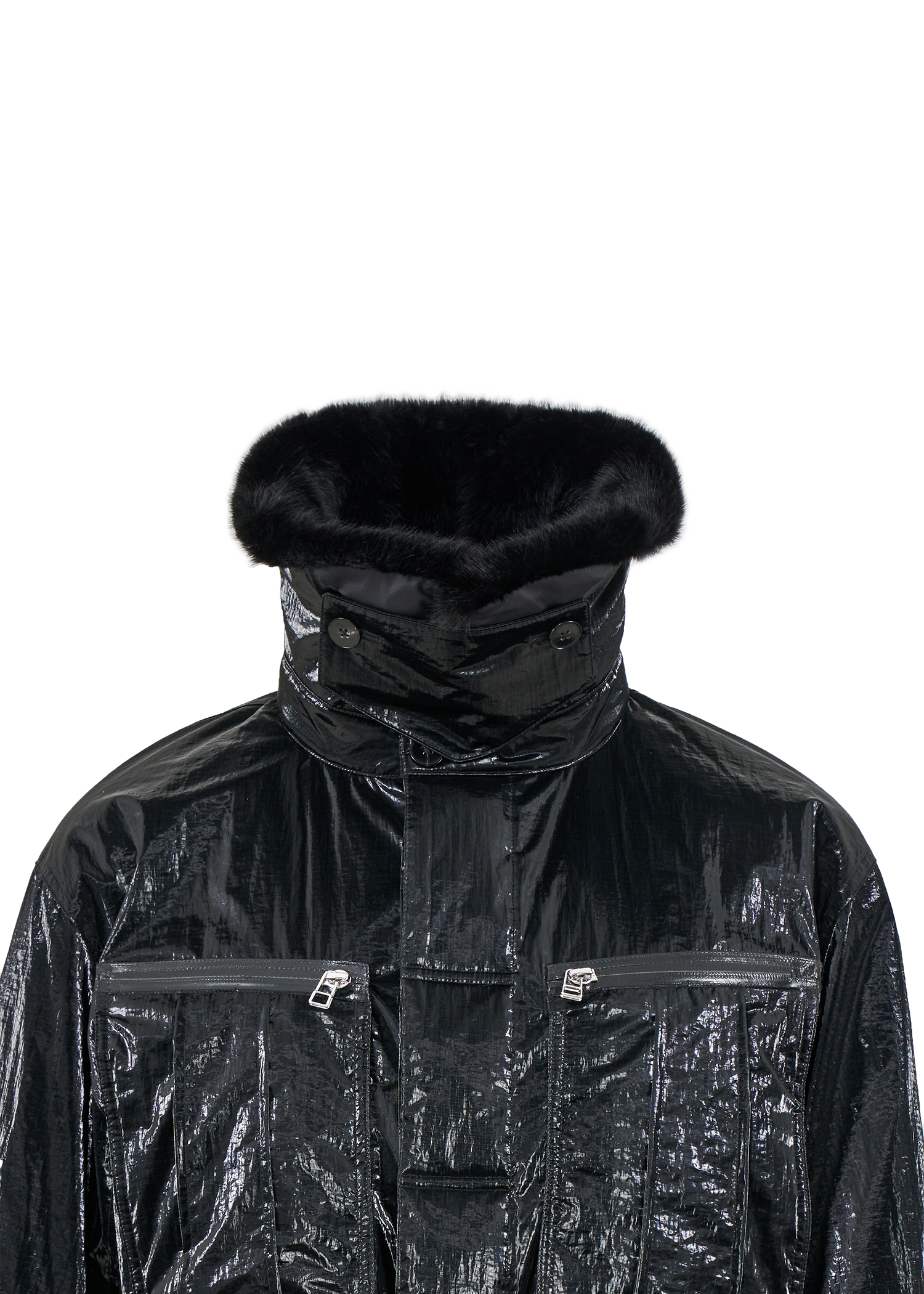 The Bia bomber jacket is a contemporary reimagining of the classic fisherman’s blouson. Made from shiny nylon, it features a detachable faux fur collar for versatile styling.