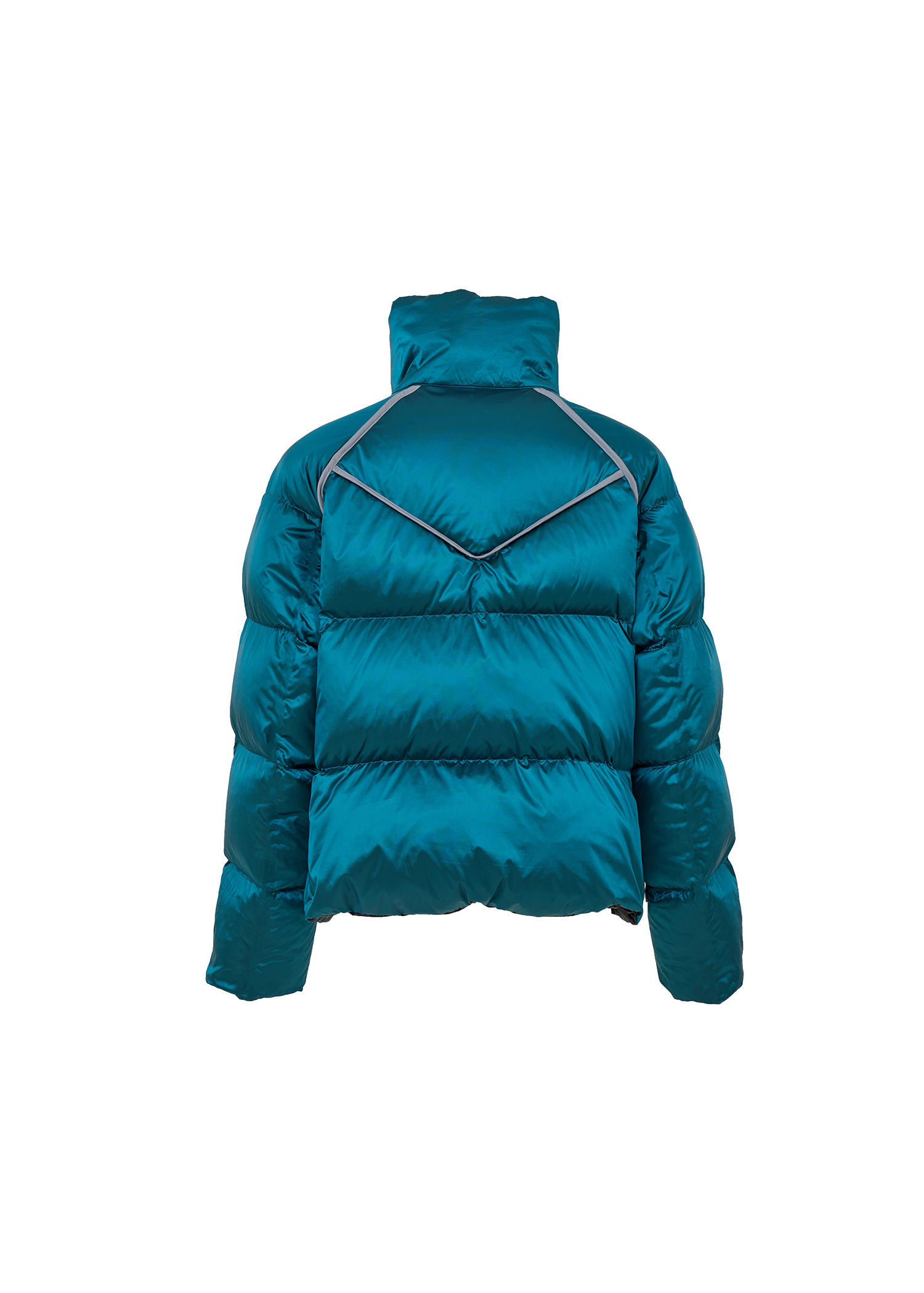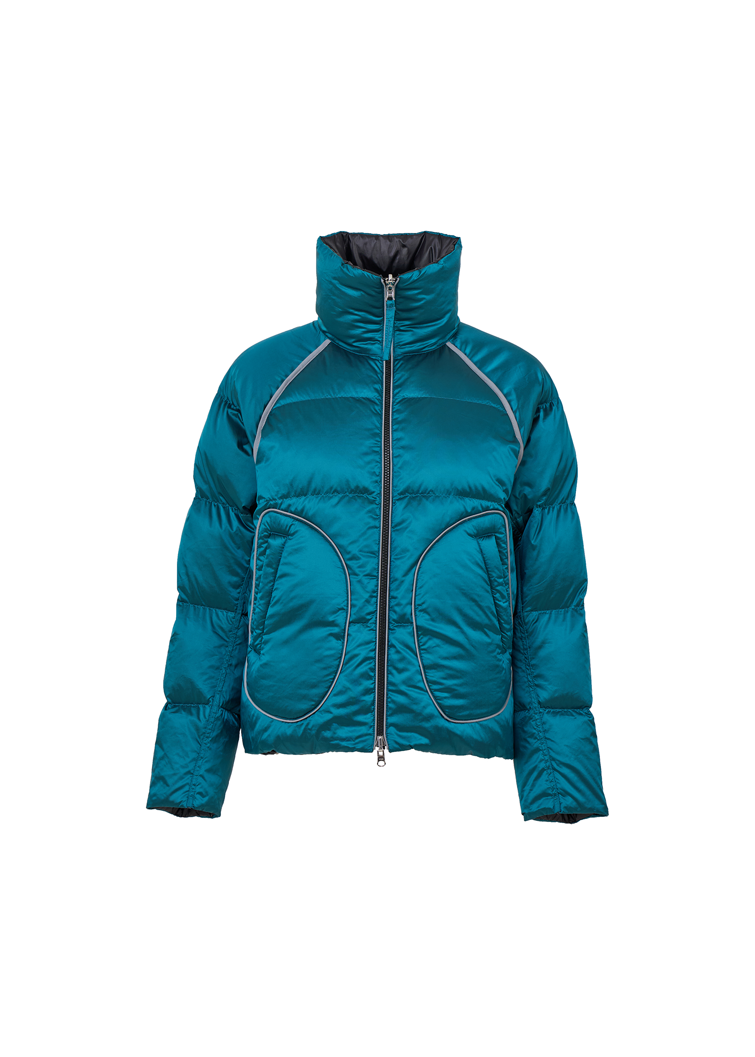 The Metis puffer jacket redefines versatility with its reversible design. The exterior features sporty reflective piping, while the reverse side showcases elegant grosgrain detailing for a monochromatic aesthetic. Perfect for day-to-night transitions, the Metis combines function and style effortlessly.